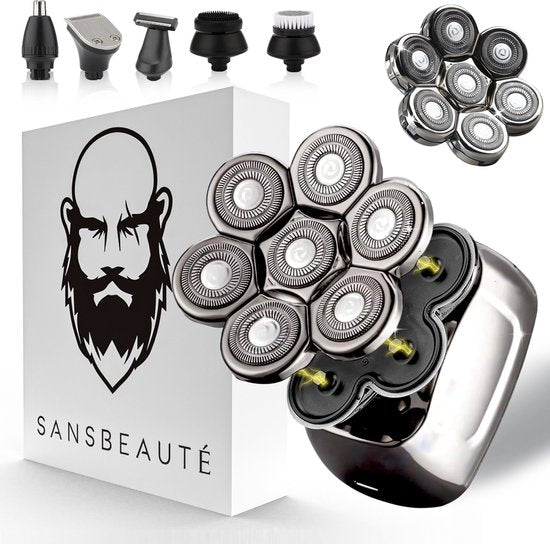 Haben auch Sie genug von unerwünschtem Haarwuchs und der Verwendung von scharfen, schmerzhaften Rasierern, die Reizungen verursachen? Suchen Sie nicht weiter, denn wir haben die ideale Lösung für Sie: den Sansbeauté® 6-in-1-Rasierer | SkullSharp PRO MAGNETIC + EXTRA Scherkopf! Dieses innovative Gerät ist mit 7 flexiblen 7D-Scherköpfen und vielseitigen Aufsätzen ausgestattet, mit denen Sie mühelos jedes Haar auf Ihrem Kopf, Gesicht und Körper entfernen können. Die einzigartigen, patentierten Klingen folgen den Konturen Ihres Gesichts und Kopfes noch besser, so dass alle Haare erfolgreich rasiert werden! Mit den 6 mitgelieferten Aufsätzen haben Sie alles zur Hand, was Sie für ein komplettes Rasurerlebnis brauchen, und Sie müssen nur einmal investieren. Die praktische LED-Anzeige zeigt Ihnen leicht an, wann das Gerät gereinigt oder aufgeladen werden muss. Außerdem ist das Gerät komplett wasserdicht und ermöglicht so eine schnelle und effiziente Rasur unter der Dusche! Außerdem sind die PRO MAGNETIC-Klingen mit einem Magnetsystem ausgestattet, das ein einfaches Öffnen und Reinigen des Scherkopfes ermöglicht. Als Bonus enthält dieses Set ein spezielles E-Book mit wertvollen Tipps für eine lange Nutzungsdauer. Darüber hinaus enthält dieses Set einen zusätzlichen Scherkopf im Wert von 24,99 €. Mit dem Sansbeauté® 6-in-1 SkullSharp PRO MAGNETIC ist Ihnen glatte und seidige Haut ohne Schnitte und Irritationen garantiert. Bestellen Sie jetzt und überzeugen Sie sich selbst! Ihre Vorteile auf einen Blick: ✓ Schmerzfreie Rasur – Unser Rasierer wurde entwickelt, um den Konturen Ihres Gesichts genau zu folgen, damit Sie eine gründliche Rasur ohne Verletzungen genießen können. Dank des weichen Gesichtsrasierers können Sie sich jetzt schmerzfrei rasieren, ohne sich Gedanken über stumpfe Klingen zu machen, die schneiden können. Dies sorgt für ein sicheres und komfortables Rasurerlebnis, so dass Sie immer ein professionelles Aussehen bewahren! ✓ Magnetische Rasierklinge (PRO MAGNETIC FUNCTION!)- Der SKULLSHARP PRO MAGNETIC ist mit der innovativen magnetischen Rasierklingenfunktion ausgestattet. Diese neue Funktion macht die Reinigung der Scherköpfe besonders einfach und eliminiert das Risiko, dass eine Scherklinge während der Reinigung bricht. Die Magnetfolie ist eine revolutionäre Entwicklung in der Rasurtechnik! Sansbeauté® ist stolz darauf, sie anbieten zu können! ✓ Vergrößerte Rasierfläche – Der Rasierer von Sansbeauté® ist mit 7 runden Scherköpfen ausgestattet, wodurch die Rasierfläche deutlich größer ist und mehrere Haare auf einmal erfasst werden können. Die sieben flexiblen 7D-Rasierklingen folgen mühelos den Konturen deines Kinns, Schädels und deiner Wangen; es könnte nicht einfacher sein! ✓ Zusätzlicher Scherkopf (2) – Mit dem zusätzlichen Scherkopf (insgesamt 2) musst du dir in Zukunft keine Sorgen mehr um den Austausch des Kopfes machen. Das spart auf Dauer nicht nur Geld, sondern garantiert auch, dass Sie immer einen frischen Scherkopf zur Hand haben. ✓ Multifunktional (6 in 1) – Unser All-in-One Rasierer bietet mit den 6 mitgelieferten Aufsätzen die ideale Lösung für alle Ihre Rasier- und Trimmbedürfnisse. Ob Sie Ihren Bart trimmen, Ihre Haut reinigen oder millimetergenau rasieren möchten, dieses Gerät hat alles! Dank der verschiedenen Aufsätze kann es als Rasierer, Barttrimmer, Nasentrimmer/Ohrschneider, Haartrimmer/Toner (mit 3, 5 und 7 mm Aufsätzen), Präzisionstrimmer, Massagebürste und Gesichtsreiniger fungieren! ✓ Hochwertige Klingen mit der Sansbeauté® Klinge – Bei einem Rasierer, der aus hochwertigen Materialien hergestellt wird, können Sie sich auf ein Gerät verlassen, das robust, langlebig und technisch fortschrittlich ist. Diese Materialien und die werksseitige Ausstattung sorgen für ein effizientes und sicheres Rasurerlebnis, ohne dass Sie schnell mit stumpfen Klingen, Falten oder Hautreizungen zu kämpfen haben. Dies garantiert eine perfekte Bart- oder schmerzfreie Haarrasur. ✓ Schneller aus der Tür! – Die 7 flexiblen Scherköpfe bieten ein beeindruckendes Rasurerlebnis in nur wenigen Minuten! So kommen Sie schneller aus der Tür; endlose Rasuren mit dem Rasierer ade! ✓ Für jeden Haartyp – Entdecken Sie das ideale Rasurerlebnis für jeden Haartyp mit unseren 7D flexiblen Klingen. Unsere Klingen wurden speziell entwickelt, um selbst den stärksten Haarwuchs zu bewältigen und zu pflegen. Dank der 7D, der 7-Rotations-Technologie, werden alle Haare schnell und effektiv entfernt. Warum sollten Sie sich für begrenzte 5 rotierende Klingen entscheiden, wenn Sie von der Überlegenheit der 7D-Technologie profitieren können? Probieren Sie es jetzt aus und erleben Sie den Unterschied! ✓ Nass- und Trockenrasur – Unser wasserdichter Gesichtsrasierer bietet die ultimative Flexibilität für alle Ihre Rasurbedürfnisse. Egal, ob Sie die Trockenrasur, die Rasiercreme oder die Rasur unter der Dusche bevorzugen, dieser Rasierer ist perfekt für jede Gelegenheit. Mit dem SkullSharp PRO MAGNETIC von Sansbeauté® können Sie sich überall rasieren, ob beim Camping oder für eine schnelle Rasur unterwegs. Mit der kostenlosen Aufbewahrungstasche und dem mitgelieferten Reiseschloss wird alles noch einfacher. Außerdem lässt sich der Gesichtsrasierer einfach unter dem Wasserhahn abspülen. ✓ Keine Einwegrasierer mehr (Geld sparen) – Unsere innovativen Klingen und multifunktionalen Aufsätze bieten eine ideale Lösung für teure Einwegrasierer! Sparen Sie an austauschbaren Epilierern und vermeiden Sie den regelmäßigen Austausch von stumpfen Rasierklingen. Unsere langlebigen und effektiven Aufsätze und Rasierklingen sind die ideale Investition für glatte, weiche Haut ohne die hohen Kosten für den ständigen Austausch von Einwegrasierklingen. Überall und jederzeit Mit den verschiedenen Aufsätzen des Sansbeauté® 6-in-1Rasierers haben Sie die Freiheit zu wählen, wie Sie sich rasieren 