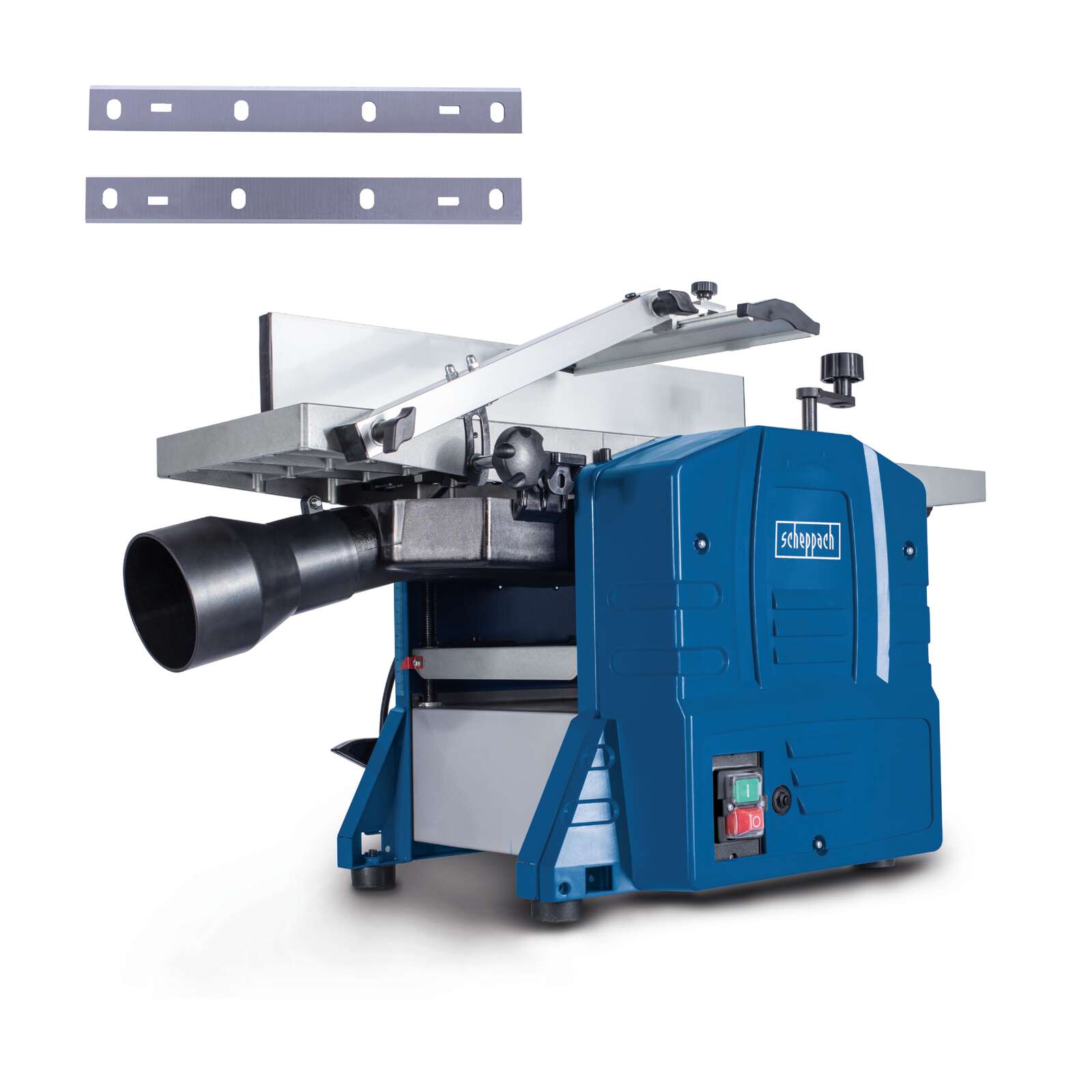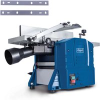 Die HMS860 von scheppach ist eine kombinierte Abricht- und Dickenhobelmaschine für anspruchsvolle Heimwerker. Der plangenaue Abrichttisch aus Aluminium-Druckguss sorgt für beste Hobelergebnisse. Durch die kompakte und stabile Bauweise ist dieses Tischmodell auch für den mobilen Einsatz geeignet. Ein sicherer Stand, die manuelle Höhenverstellung und der Anschluss einer Staubabsaugung, ermöglichen komfortables Arbeiten. Kombinierte Abricht- und Dickenhobelmaschine Kraftvoller 1500 W Motor für müheloses Abrichten und Hobeln Kompaktes Tisch-Modell mit einer Durchlasshöhe und -breite von 120 und 204 mm Zwei HS-Hobelmesser und eine Messerdrehzahl mit 9000 min-1 für leichtgängiges und präzises Hobeln Abrichtanschlag für exakte Winkel von 90° bis 135° Vibrationsdämpfende Gummifüße für stabilen Stand Präzise Höhenverstellung des Dickenhobels über Handkurbel Dickenhobel mit ausziehbarer Werkstückauflageinkl. 2. Messersatz Zuerst begradigen, dann auf die gewünschte Dicke hobeln – mit dem HMS860 Dickenhobel von scheppach mit integrierter Abrichthobelmaschine. Das kompakte Gerät mit vibrationsdämpfenden Gummifüßen ermöglicht nicht nur müheloses, sondern auch schwingungsfreies Abrichten und Hobeln. Der in der HMS860 integrierte Abrichthobel dient zur Herstellung ebener Flächen, insbesondere bei verzogenen und windschiefen Hölzern bzw. zum Abrichten von Brettern, Bohlen oder Kanthölzern. Hierfür wird das Holzwerkstück über den plangenauen oberen Abrichttisch aus Aluminium-Druckguss geführt, wobei die beiden Hobelmesser die Unterseite des Holzes mit einer maximalen Spanabnahme von 2,5 mm begradigen. Mithilfe des 540 mm langen und 112 mm hohen Abrichtanschlages lassen sich exakte 90° Winkel oder beliebige Winkel bis 135° erzeugen. Nach dem Abrichten wird das Werkstück gehobelt. Dafür werden der Abrichttisch und der Absaugstutzen nach oben verstellt. Zwei HS-Hobelmesser nehmen bis zu 2 mm an der Oberseite des Werkstückes ab, das mittels automatischen Vorschubs mit 6,4 m/min über den ausziehbaren Hobeltisch und durch den Dickenhobel geführt wird. Die maximale Durchlasshöhe beträgt bei der HMS860 120 mm. Die gewünschte Hobeldicke kann mit einem Handrad eingestellt werden und bleibt während des gesamten Arbeitsvorganges konstant. So können auch mehrere Werkstücke hintereinander auf dieselbe Dicke gebracht werden – sehr vorteilhaft z.B. beim Bearbeiten von Dielenbrettern. Der 1500 Watt Motor sorgt für eine Messerdrehzahl von 9000 min-1 und damit für eine zügige Bearbeitung. Die hohe Drehzahl der Messerwelle führt zudem zu sehr feinen Oberflächen. Die beiden Hartmetall Messer werden sowohl für das Abrichten als auch für das Hobeln verwendet. Ein großzügiger Absaugstutzen mit 98 mm Außendurchmesser für eine externe Staubabsaugung, sorgt dafür, dass die Späne aus dem Arbeitsbereich entfernt werden und die Luft in der Werkstatt staubfrei bleibt.