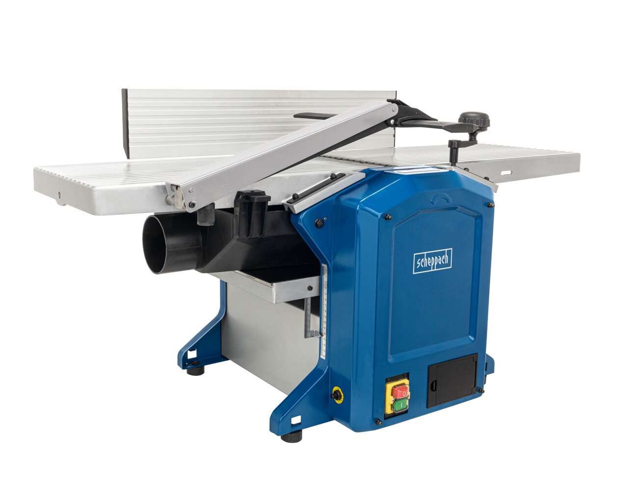 Die Abricht- und Dickenhobelmaschine HMS1250 von scheppach wurde speziell für den anspruchsvollen Heimwerker entwickelt, der sich gute Ergebnisse zu einem vernünftigen Preis wünscht. Ein sicherer Stand, der schwenkbare Abrichtanschlag, die manuelle Höhenverstellung und der Anschluss einer Staubabsaugung ermöglichen komfortables Arbeiten. • Kombinierte Abricht- und Dickenhobelmaschine für anspruchsvolle Heimwerker • Kraftvoller 1800 W Motor für müheloses Abrichten und Hobeln • Durchlasshöhe 6-160 mm, 305 mm Durchlassbreite • Zwei HS-Hobelmesser, Messerdrehzahl 9500 min-1 für leichtgängiges und präzises Hobeln • Einfache Höhenverstellung des Dickenhobels über Handkurbel • Abrichtanschlag mit 45° Winkelverstellung für exakte Winkel von 90° bis 135° • Abrichttisch 1075 x 310 mm • Dickentisch 500 x 305 mm • 100 mm Absaugungsanschluss • Vibrationsdämpfende Gummifüße für stabilen Stand