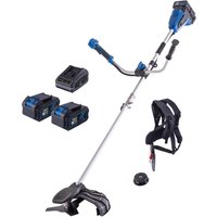 Der Scheppach Akku-Freischneider BC-BCH380/40-X vereint Rasentrimmer und Motorsense in einem Gerät und eignet sich damit optimal zum Mähen von hohem Gras oder dichtem Gestrüpp. Der verstellbare Bike-Griff mit Zwei-Hand-Führung und der Schultergurt ermöglichen dabei ein sicheres, ergonomisches und ausdauerndes Arbeiten. Das Spindle-Lock-System sorgt für den einfachen Wechsel der Schneidgarnitur. Dank 3-stufiger Drehzahlregulierung ist außerdem eine optimale Anpassung an die örtlichen Gegebenheiten möglich. Angetrieben wird der Akku-Freischneider von einem kraftvollen bürstenlosen Motor. Dieser Brushless Motor sorgt für einen besonders hohen Wirkungsgrad, eine längere Laufzeit, eine hohe Lebensdauer und einen geringeren Verschleiß. Als Teil der Scheppach IXES 20-VoltSerie können alle Akkus und Ladegeräte der Systemreihe mit dem BC-BCH380/40-X kombiniert werden. Akku und Ladegerät sind separat erhältlich. • Leistungsstarker Akku-Freischneider – Rasentrimmer und Motorsense in einem • Wartungsfreier, bürstenloser Motor (Brushless Motor) mit besonders hohem Wirkungsgrad, längerer Laufzeit, hoher Lebensdauer und geringem Verschleiß • Kabelloses Arbeiten mit der Scheppach IXES 20-Volt-Serie – alle Akkus und Ladegeräte aus der Systemreihe können mit dem Akku-Freischneider kombiniert werden • Kraftvolle 2x 20 V (40 V) • Schnittbreite Rasentrimmer 380 mm / Schnittbreite Motorsense 255 mm • Einfacher Wechsel der Schneidgarnitur dank Spindle Lock • Hochwertiges 3-Zahn-Motorsensenmesser für besonders dichtes Gestrüpp • Anti-Vibrationstechnologie für ergonomisches und vibrationsarmes Arbeiten • 3-stufige Drehzahlregulierung zur optimalen Anpassung an die örtlichen Gegebenheiten – Rasentrimmer 4000 / 5000 / 6200 min-1 – Motorsense: 4200 / 5200 / 6700 min-1 • Doppelfaden-Spule mit Tippautomatik und 1,6 mm zur Fadenverlängerung (Tap’n’Go-Funktion) • Einfache und werkzeuglose Montage / Demontage für eine platzsparende Lagerung • Verstellbarer Bike-Griff mit Zwei-Hand-Führung und rutschfester Softgrip-Oberfläche für ergonomisches und ausdauerndes Arbeiten • inkl. 2x 4Ah Akku + 2,4A Doppelladegerät