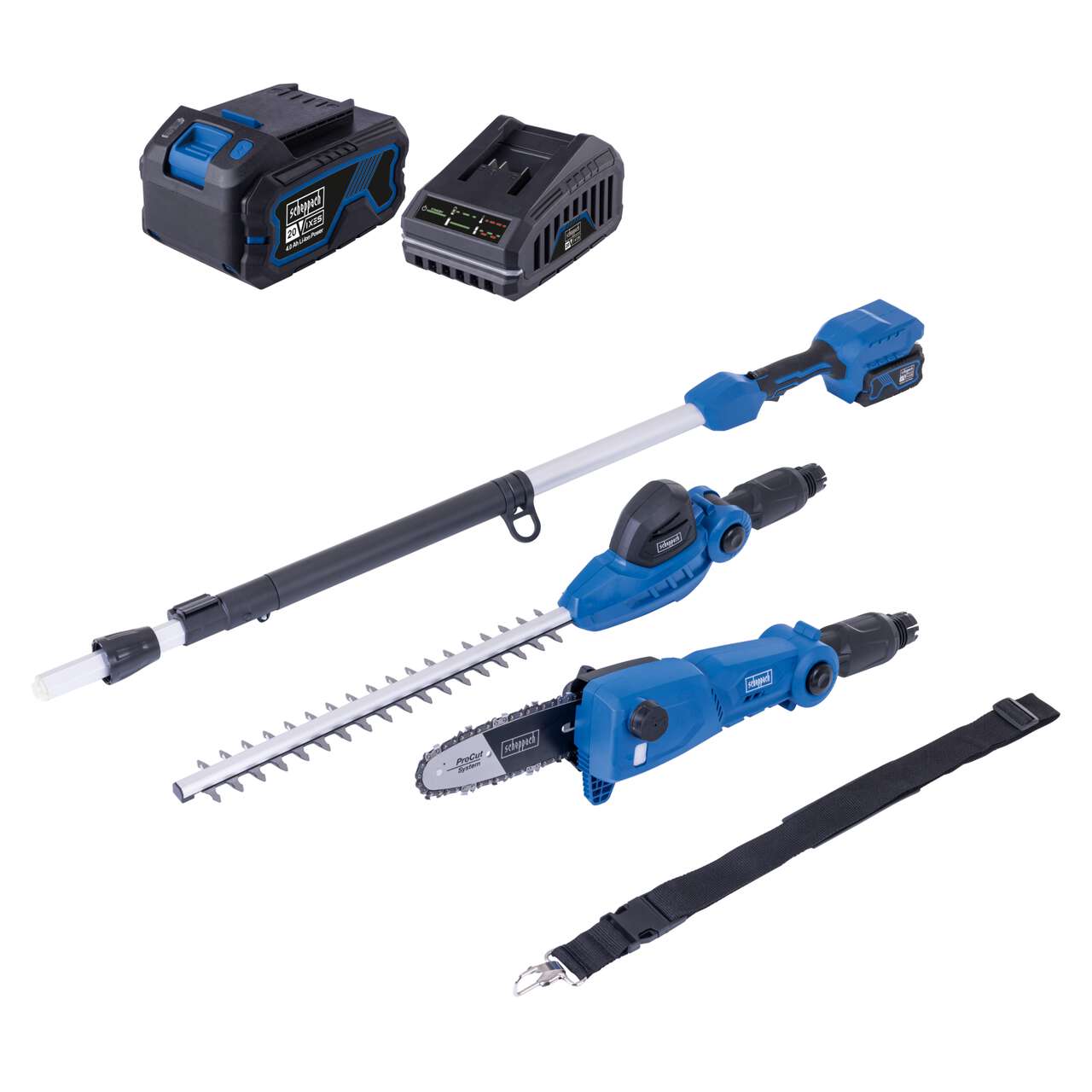 Akku-Multifunktionsgerät C-PHTS410-X Scheppach | Schnittlänge Heckenschere/Hochentaster 410/180 mm