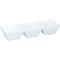 Alpina weiße Snackschale mit 3 quadratischen Fächern. Schaffen Sie mehr Ambiente auf Ihrem Tisch bei Drinks oder einem geselligen Abend mit dieser Snack-Servierschale von Alpina. Das Design macht es einfach, drei verschiedene Arten von Snacks zu trennen.Merkmale:Farbe: weißMaterial: PorzellanGrößen: 28 x 8,5 x 3 cm (L x B x H)