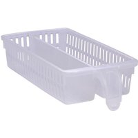 Mit dieser praktischen Aufbewahrungsbox bleibt Ihr Kühlschrank ordentlich und organisiert. Diese Box passt in jeden Kühlschrank und ist perfekt für die Aufbewahrung kleinerer Behälter, wie Getränke und Snacks. Mit einer Trennwand in der Mitte der Box können Sie Ihren Vorrat effizient unterteilen und Ihre Lebensmittel in verschiedene Kategorien einordnen, was für noch mehr Übersicht im Kühlschrank sorgt. Die Aufbewahrungsbox ist aus hochwertigem Kunststoff gefertigt und verfügt über einen stabilen Griff. Außerdem kann die Box in der Spülmaschine gereinigt werden. – Aufbewahrungsbox für den Kühlschrank – hilft Ihnen, Ihren Platz zu organisieren – für die Spülmaschine geeignet Technische Daten: Farbe: klar Material: Kunststoff Abmessungen: 30,4 x 14,3 x 6,5 cm Fassungsvermögen: 2 x 0,9 Liter Gewicht: 0,126 kg