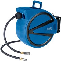 Der Scheppach Druckluft-Schlauchaufroller AHR15 eignet sich für Druckluft-Arbeiten aller Art und sorgt gleichzeitig für Ordnung in jeder Werkstatt oder Garage. Das um 180° schwenkbare Trommelgehäuse und der 15 m Druckluftschlauch mit vorinstallierter Schnellkupplung sorgen für einen extra großen Arbeitsradius. Der Druckluftschlauch wird automatisch auf- bzw. abgerollt und kann dank Auto-Stopp an der gewünschten Stelle arretiert werden. Die Schlauchbremse verhindert dabei ein unkontrolliertes Zurückschnellen des Schlauchs. Praktischer Druckluft-Schlauchaufroller mit Aufroll- / Abrollautomatik Um 180° schwenkbares Trommelgehäuse Großer Arbeitsradius dank 15 m Druckluftschlauch mit vorinstallierter Schnellkupplung mit ¼” Anschluss sowie 1m Anschlussschlauch Auto-Stopp sichert die Position des ausgezogenen Schlauchs an der gewünschten Stelle Automatischer Einzug: Aufwicklung durch kurzes Ziehen am Schlauch Schlauchbremse verhindert ein unkontrolliertes Zurückschnellen des Druckluftschlauchs Maximal 15 bar Arbeitsdruck Kunststoffgehäuse mit praktischer Wandhalterung Praktischer Tragegriff Schlauchdurchmesser: 9,3 mm innen / 15,3 mm außen