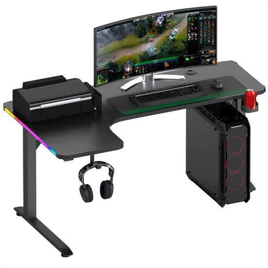 Avalo Gaming Desk – 160x100x75 CM – L-förmiger Eckschreibtisch – Game Desk mit LED-Beleuchtung – Tisch – Schwarz