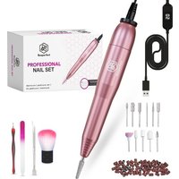 Beeperfect® Elektrische Nagelfeile – Nagelfräse – Maniküre- und Pediküreset – 12 Bits und 60 Schleifrollen – 4 Extra-Zubehör – Pink