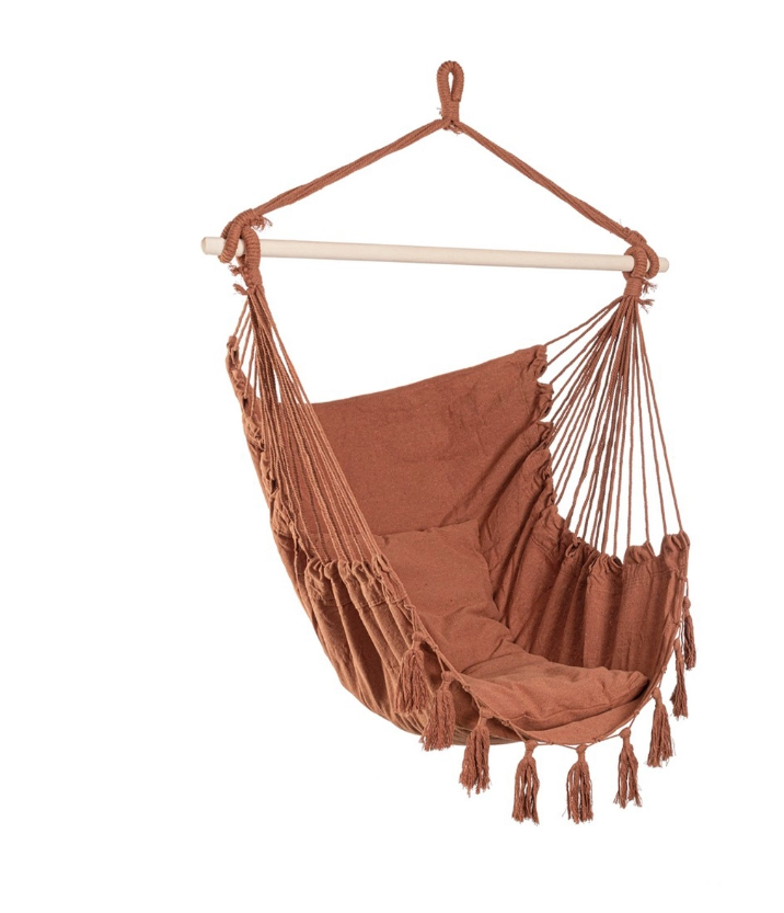 Hängesessel Juan – Komfort und Stil für drinnen & draußen Der Hängesessel Juan vereint Komfort, Robustheit und minimalistisches Design. Er ist aus strapazierfähiger Poly-Baumwolle mit einem Stab aus Pappelholz gefertigt und lässt sich leicht an der Decke, einem Balken oder einem Ständer aufhängen. Das mitgelieferte Kissen bietet zusätzliche Weichheit, ideal zum Lesen, Entspannen oder Meditieren. Abmessungen: 100 x 130 cm Einschließlich Kissen & dekorative Quasten Tragfähigkeit: max 120 kg Geeignet für Innen- und überdachte Außenbereiche Eine stilvolle Ergänzung für jeden Innenraum oder jede Terrasse .