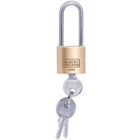 BLACK+DECKER Vorhängeschloss – 25mm – Langer Bügel – Inkl. 3 Schlüssel – Massivmessingschloss