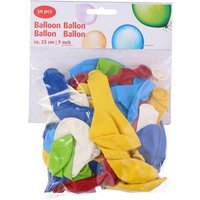 Eine Packung mit 50 bunten Luftballons mit einem Umfang von ca. 23 cm.Ideal für Indoor- und Outdoor-Veranstaltungen!