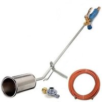 Der CFH GV900 ist ein professioneller Unkrautbrenner, der mit einem großen Brennerkopf ausgestattet ist. Dieser Unkrautbrenner GV900 wird mit einem 5 Meter langen Gasschlauch geliefert. Dieser Gasschlauch passt zu den großen 5, 10 oder 33 kg Gasflaschen. So sind Sie nicht auf die kleineren Gasflaschen angewiesen. Die großen Gasflaschen sind an den meisten bedienten Tankstellen, in Campingläden und/oder Baumärkten erhältlich. Das CFH GV900 ist ein absolut hochwertiges Produkt für eine extrem lange Nutzungsdauer. Sie ist vollständig verchromt und mit einem ergonomischen Griff ausgestattet. In der Nähe des Griffs befindet sich ein runder Drehknopf, mit dem der Gasdruck eingestellt werden kann. Wenn Sie den Quetschgriff loslassen, haben Sie nur eine Zündflamme. Durch Drücken des Quetschgriffs erhält der Brenner die (eingestellte) große Arbeitsflamme. Bekämpfen Sie all Ihr unerwünschtes Unkraut mit diesem zuverlässigen CFH GV900 UnkrautbrennerTechnische Daten:- Marke: CFH- Typ: Gas-Unkrautbrenner- Flammentemperatur: Einstellbar bis zu 1600 °C- Zündung: Manuell- Gasdruck / Flammengröße: Einstellbar- Erforderliche Gasart: Propan und/oder Butan- Material Lanze: Verchromt- Material Griff: Kunststoff- Material Brennerkopf: Verchromt- Länge: 90 cm.- Gewicht des Brenners: 750 Gramm – Gewicht Gasschlauch: 715 GrammAusgestattet mit:- Piezo-Zündung: Nein- Ergonomischer Griff: Ja- Regelventil zum Vergrößern und Verkleinern der Flamme: Ja- Energiesparhebel: Ja- Abflusshalterung: Ja- Brennerkopf mit einem Durchmesser von 6,5 cm.Wird mitgeliefert:- Druckregler: Ja, 2,5 bar- Gasschlauch: Ja, 5 Meter- Gebrauchsanweisung.- 2 Jahre GarantieErforderliche Gasflasche:Dieser Unkrautbrenner sollte an eine große Gasflasche angeschlossen werden. Diese sind u.a. an bedienten Tankstellen erhältlich.Welche Gasflasche benötige ich und wie schließe ich sie an? Für Informationen klicken Sie bitte HIER.