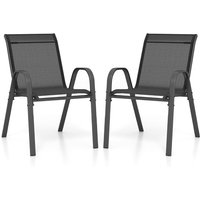 coast 2er Set schwarzer stapelbarer Terrassenstühle mit Armlehnen – 56x70x84 cm – atmungsaktiv & Metallrahmen