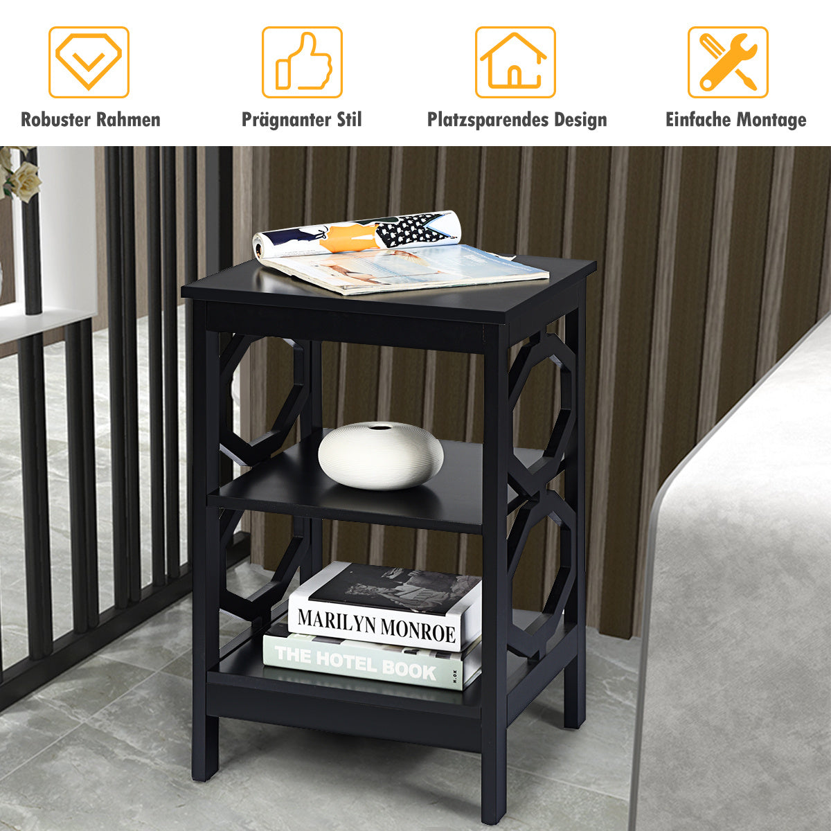 Coast 3-stufiger Nachttisch oo-förmiger Nachttisch mit stabiler Struktur 40 x 40 x 61 cm schwarz
