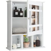 Coast Badezimmer Wand Storage Cabinet Spiegelschrank hölzerne hängenden Medizinschrank mit verstellbaren Regal und 3 offene Fächer Weiß