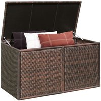 Coast Rattan Terrassenbox 335 L – Braun – 115 x 60 x 65 cm – Wetterfeste Garten-Aufbewahrungsbox mit Deckel und 2 Ablagen
