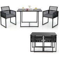 Coast Terrassenmöbel Set 3-teilig PE Rattan Schwarz mit klappbarer Rückenlehne, Tisch 108x60x72 cm und Stühle 54x52x85 cm