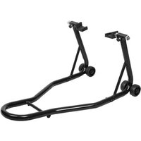 Mit diesem Motorrad-Wagenheber-Montageständer können verschiedene Wartungs-, Montage- und Servicearbeiten durchgeführt werden. Die Befestigungspunkte des Motorradhebers sind komplett gummiert, was Kratzer an der Schwinge verhindert. Merkmale: Gummibeschichtung – Die Befestigungspunkte des Motorradhebers sind vollgummiert, was hilft, Beschädigungen an der Schwinge zu vermeiden. Ausgestattet mit Rädern – Dank der eingebauten Räder rollt der Montageständer bei der Montage und Demontage reibungslos. Solide Konstruktion – Der Montageständer ist aus pulverbeschichtetem Stahlrohr gefertigt, was eine robuste und langlebige Konstruktion gewährleistet. Flexibel einstellbar – Dieser Montageständer eignet sich hervorragend für alle Servicearbeiten, wie z.B. das Schmieren der Kette, das Reinigen der Felge, den Reifenwechsel usw. Abnehmbar – Der Montageständer ist einfach zu montieren und auch schnell wieder zu demontieren.Merkmale: Gummiert – Die Befestigungsecken des Motorständers sind komplett gummiert, um Kratzer an der Schwinge zu vermeiden. Mit Rädern – Die eingebauten Räder lassen den Montageständer beim Auf- und Abbocken stabil rollen. Solide Konstruktion – Der Montageständer ist aus Stahlrohr gefertigt und pulverbeschichtet, was für ein robustes und langlebiges Aussehen sorgt. Flexibel einstellbar – Der Montageständer bietet eine wertvolle Unterstützung für verschiedene Wartungsarbeiten, wie z.B. das Schmieren der Kette, das Reinigen der Felge, den Reifenwechsel usw. Abnehmbar – Der Montageständer ist einfach aufzubauen und schnell zu demontieren. Durch seine Zerlegbarkeit nimmt er wenig Stauraum in Anspruch. Technische Daten: Farbe: Schwarz Material: Stahl Griffarm: ca. 23cm-32cm Lieferumfang: 1 x Motorradständer