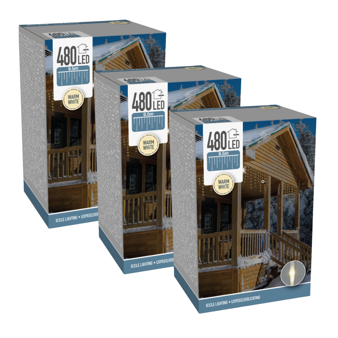 Eiszapfenbeleuchtung – SET OF 3 – 480 LED – 9,5 Meter – Für den Innen- UND Außenbereich