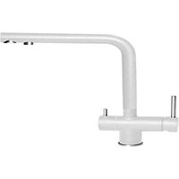 Dreiwege-Einhebelmischer von Granitek; Drehbarer Auslauf; geeignet für gefiltertes Wasser; hinteres Bedienelement; Keramikkartuschen; Montageloch (mm) Ø35; wasser- und schmutzabweisend; langlebig und stoßfest; antibakterielle Oberfläche Marke: Elleci Empfohlene Verwendung des Produkts: Küche Installationsart: Einbau Material: Granitek Farbe: 68 Weiß Anzahl der Griffe: 1 Im Lieferumfang enthalten: Granitek Küchenarmatur Grifftyp: Hebel Installationsart: Einloch Abmessungen des Artikels: BxTxH: 32,7 x 22,1 x 12 cm