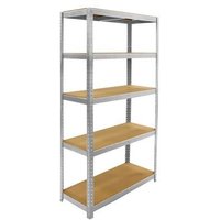 Beschreibung des ProduktsEin praktisches Aufbewahrungsregal, das sehr einfach und ohne Schrauben zu montieren ist. Dieses schwere Metallregal wird mit 5 Fachböden geliefert, die Sie nach Belieben anordnen können. Das Regal hat eine maximale Tragkraft von 175 kg pro Boden.Spezifikationen:- Material: Metall / Spanplatte- Höhe: 180 cm- Breite: 90 cm- Tiefe: 40 cm- Montage ohne Schrauben- Fachböden sind höhenverstellbar- Belastbarkeit bis zu 175 kg pro BodenTipps & Tricks: – Verwenden Sie dieses Regal in Kombination mit Umzugskartons, um all Ihre Sachen ordentlich und übersichtlich im Regal zu verstauen- Befestigen Sie dieses Regal an der Wand, damit es nicht umkippt.- Beschriften Sie die Aufbewahrungskästen und -boxen, damit Sie Ihre Sachen leicht wiederfinden.Hinweis: nicht für Feuchträume geeignet
