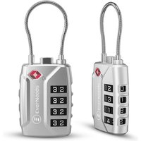 EverNeeds Kofferschloss – TSA-Schloss – 4-stelliges Vorhängeschloss – Zahlenschloss – Silber – 2 Stück
