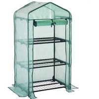 Informationen zum Produkt Immer frisches Gemüse! Das stabile Gardebruk®-Gewächshaus bietet ausreichend Platz für Ihre Pflanzen auf kleinem Raum. Das Gewächshaus kann auch für den Anbau verschiedener Gemüsesorten und Kräuter genutzt werden. Schützen Sie empfindliche Pflanzen, Blumen oder Gemüse vor Wind, Regen, Bodenfrost und Insekten. Dank des praktischen Stecksystems ist die Montage im Handumdrehen und ohne Werkzeug erledigt. Die Folie lässt immer genügend Sonnenlicht herein und speichert auch Feuchtigkeit und Wärme. Wenn es zu heiß wird, öffnen Sie einfach den Reißverschluss an der Tür und rollen ihn auf. Dies gewährleistet eine ideale Luftzirkulation. Im Inneren des Folienzeltes bieten stabile Regale Platz für kleine Pflanzen. Die Fachböden können jeweils mit bis zu 10 kg belastet werden. Die Unterkante des Deckels ist etwas länger als der Rahmen. Es ist ratsam, den Rand des Unterstandes mit Erde oder Steinen zu beschweren, um die Gesamtstabilität des Unterstandes zu erhöhen. Für eine optimale Befestigung des Gewächshauses werden Seile und Bodenanker mitgeliefert. Produktvorteile: Robuste Wetterfeste Folie Stabile Schalen Inkl. Bodenanker, Ösen und Seile Einfache Konstruktion mit Stecksystem Rolltor Ideal für Gurken, Kopfsalat, Paprika, Tomaten und mehr Technische Daten: Modell mit 3 Einlegeböden Gesamtabmessungen (HxTxL): 126 x 49 x 69 cm Abmessungen der Tür (HxB): 98 x 51 cm Bodenfläche: 0,34 m², Inhalt: 0,38 m³, Durchmesser des Rahmens: 1,6 cm Rohrstärke: 0,4 mm Anzahl der Einlegeböden 3 Rahmenmaterial: pulverbeschichteter Stahl Folienmaterial: PE 140 g/m², Fassungsvermögen pro Fachboden: 10 kg Farbe: Grün Umfang der Lieferung: 1 x Foliengewächshaus Montageanleitung Montagematerial 4 x Heringe 4 x Augen 4 x Seile