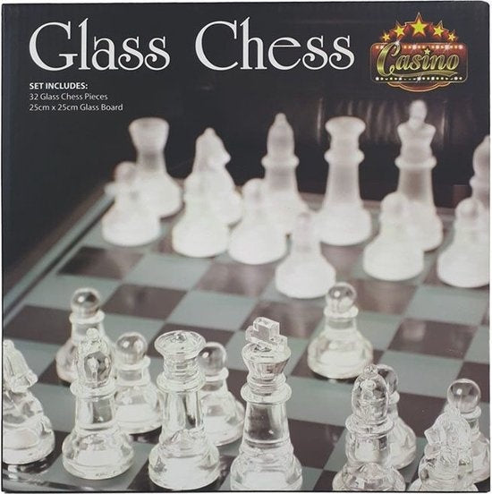 Glasschachspiel 25x25cm:Glasschachspiel mit matten und glänzenden Schachfiguren. 33-dlg inkl Glasbrett 25x25cm.Dieses Schachbrett ist neu, aber die Schachtel ist beschädigt. Auch anderes Bild auf Schachtel, ist aber das gleiche, nur ältere Version.