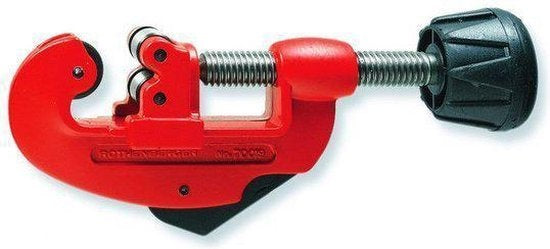 Mit diesem Rohrschneider schneiden Sie runde Kupferrohre mit einem Durchmesser von 3 mm bis maximal 28 mm rechtwinklig ab. So sorgen Sie mit dem Rohrabschneider für einen optimalen Durchgang der Rohre. Kurzum, mit dem Rohrabschneider arbeiten Sie schnell und erzielen eine saubere, rechtwinklige Schnittkante.Spezifikationen;- Marke; GS. – Schneidleistung; 3-28 mm, stufenlos einstellbar.- Metallgehäuse mit roter Beschichtung. – Abmessungen; 135x60x25 mm. – Gewicht; 132 Gramm.