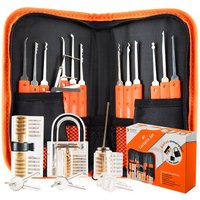 Kannst du das Schloss deiner Haustür öffnen, ohne einen Schlüssel zu benutzen? Lockpicking ist eine faszinierende Herausforderung, bei der du Schlösser ohne Schlüssel öffnen kannst. Es ist wie im Film! Mit diesem kompletten 32-teiligen Dietrich-Set von Happy Goods kannst du stundenlang üben und Spaß haben. Schlüsseldiebstahl-Set Da bist du nun. Das Schloss muss geöffnet werden. Du konzentrierst dich und schaust auf dein Dietrich-Set. Welches Werkzeug ist in diesem Moment die richtige Wahl? Du versuchst es mit dem ersten, aber leider schlägt es fehl. Du bleibst hartnäckig und wählst das nächste Werkzeug. Es erfordert etwas Konzentration, aber PATS! Das Schloss öffnet sich! Was für ein tolles Gefühl!” Lockpicking Set: 3 transparente Übungsschlösser Bonuslevel: 3x Schlosshülsen 17 verschiedene Lockpick-Werkzeuge Premium Qualität (unerlässlich beim Lockpicking!) Luxuriöses Etui mit Reißverschluss Geeignet für Anfänger und Fortgeschrittene Schöne Verpackung Lockpicking für… für Anfänger und Fortgeschrittene Dieses 2021er Set ist sowohl für Einsteiger als auch für Fortgeschrittene perfekt geeignet. Besonders praktisch sind die drei transparenten Schlösser. Dank des durchsichtigen Designs können Sie genau sehen, was Sie tun, was den Lernprozess beschleunigt und Ihre Fähigkeiten verbessert! Komplettes Lockpick-Set In diesem umfassenden Lockpicking-Set von Happy Goods finden Sie alles, was Sie brauchen. Es enthält verschiedene Übungsschlösser (transparent), Schlüssel und Picks. Mit diesem kompletten Set können Sie stundenlang üben und Ihre Geschwindigkeit und Ihr Geschick beim Öffnen von Schlössern verbessern. Außerdem wird alles in einer luxuriösen Aufbewahrungsbox mit Reißverschluss geliefert, so dass Sie es überallhin mitnehmen können. Inhalt des Dietrich-Sets: 12 x Dietrich-Werkzeuge 5 x Schlüssel 3 x Übungsschlösser 3 x Schlosshüllen 6 x Schlüssel 1 x Luxus-Aufbewahrungstasche mit Reißverschluss 1 x Anleitung 1 x Verpackung
