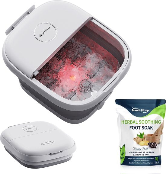 Heevey – Elektrisches Fußbad – Fußbad mit Massage – Fußmassagegerät – Heizung bis 45°C – 6 Massagerollen – klappbar – inkl. Badesalz