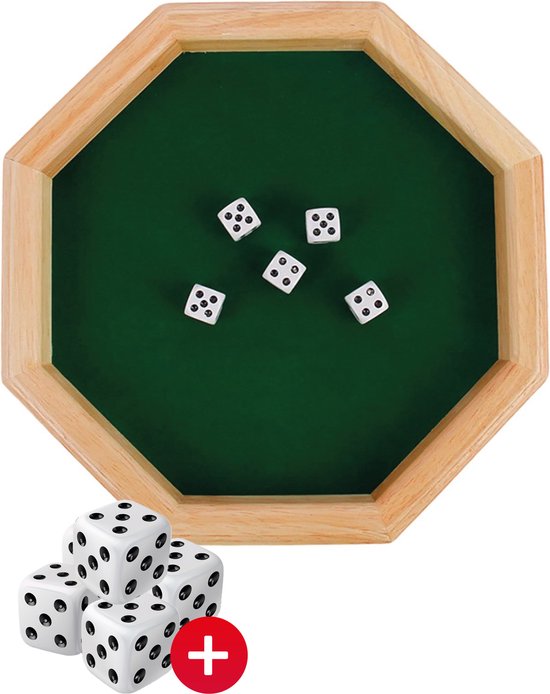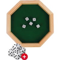 Erleben Sie die ultimative Ergänzung für Ihre Spieleabende mit dem Würfeltablett inklusive 6 Würfeln. Dieses stilvolle und robuste Würfeltablett ist perfekt für jeden begeisterten Spieler. Aus hochwertigem Holz gefertigt und mit einer grünen Filzmatte ausgestattet, kombiniert dieses Tablett Eleganz mit Langlebigkeit. Vorteile des Würfeltabletts: Qualitätsmaterialien: Hergestellt aus robustem und haltbarem Holz, das für den dauerhaften Gebrauch entwickelt wurde und intensiven Spielsessions standhält. Komplett mit Würfeln: Enthält 6 Würfel, damit Sie sofort loslegen können. Elegantes Filzvlies: Das grüne Filzvlies bietet ein luxuriöses Aussehen und dämpft das Geräusch der Würfel, so dass sie leise bleiben und Ihr Tisch geschützt wird. Benutzerfreundlichkeit: Die Würfelablage hält alle Würfel zusammen, verhindert, dass sie vom Tisch rollen und macht das Werfen übersichtlich. Ideal für verschiedene Spiele: Perfekt für eine breite Palette von Würfel- und Brettspielen, von Yahtzee bis Monopoly und mehr. Unvergleichlicher Komfort und Benutzerfreundlichkeit: Erleben Sie die Einfachheit und den Komfort des Würfeltabletts, das Ihr Spielerlebnis erheblich bereichert. Der robuste Holzrahmen und die weiche Filzmatte bieten die perfekte Mischung aus Haltbarkeit und Komfort. Die Würfel rollen sanft und kontrolliert, was jeden Wurf fair und angenehm macht. Spezifikationen: Material: Hochwertiges Holz für eine lange Lebensdauer und ein luxuriöses Aussehen Filzmatte: Grüne Filzmatte bietet eine weiche und leise Oberfläche Abmessungen: 26 x 26 x 2,8 cm (LxBxH) Inklusive: 6 Würfel Gewicht: 500 Gramm, leicht aber robust Einfach zu reinigen: Leicht zu reinigen.jk und leicht abnehmbar Jetzt entdecken: Wählen Sie das Würfeltablett mit 6 Würfeln als elegante und robuste Ergänzung zu Ihrer Spielesammlung. Perfekt für alle Gelegenheiten, egal ob Sie ein begeisterter Brettspieler sind oder einfach Ihre Spieleabende verschönern wollen. Erleben Sie den besten Spielkomfort mit diesem hochwertigen Würfeltablett.