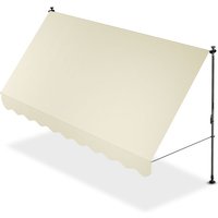 Material: Stoff (180 g/m²; PU-beschichtet), Stahl Farbe: beige Abmessungen (annähernd): Abmessungen (BxT): 350 x 120 cm Höhe: 200 – 297 cm Klappe (+ Überhang): 178 cm + 20 cm Lieferumfang: 1 x Klemmmarkise 1 x Befestigungsmaterial 1 x Gebrauchsanweisung