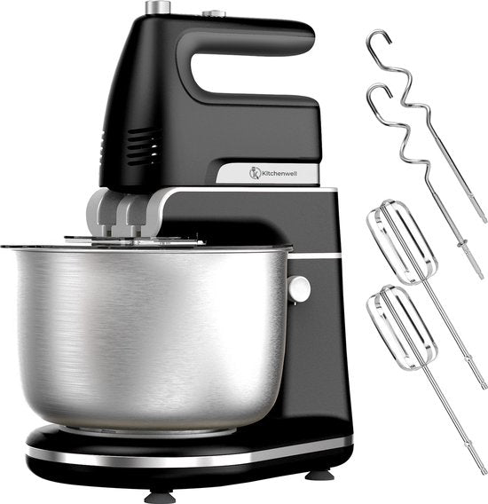 Kitchenwell Mixer – 5 Geschwindigkeiten und Turbofunktion – 300W – 3.5L Automatisch drehende Schüssel – Rührbesen & Knethaken