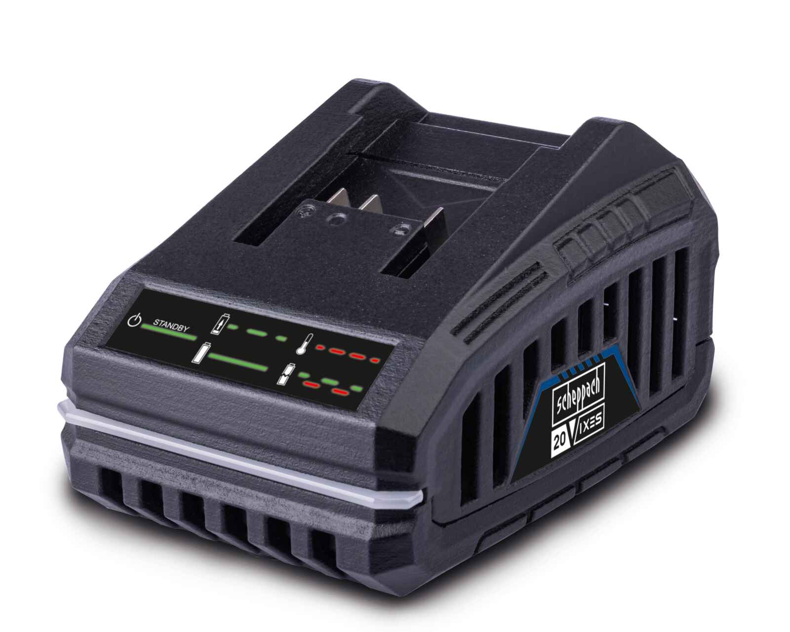 Ladegerät SBC2.4A Scheppach – 20V | 2,0 Ah Akku ca. 60 Min. Ladezeit / 4,0 Ah Akku ca. 120 Min. Ladezeit | LED-Anzeige | Wandhalterung