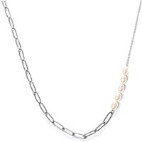 Laura Ferini Damenhalskette Perla Silber – Asymmetrische Gliederkette aus Silber mit Perlen – 18K Weißgold vergoldet – Halskette – Halskette – Schmuck – Accessoires – Damenhalskette mit Perlen