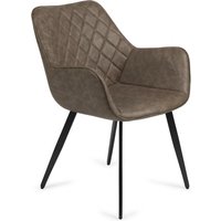 Braune Wannenstühle – Lifa Living Diese atemberaubenden Wannenstühle werden im Zweierset angeboten und verleihen Ihrer Einrichtung zweifellos einen besonderen Touch. Die großzügigen Wannenstühle sind aus veganem Leder gefertigt und bieten in Kombination mit den Metallbeinen einen eleganten und schlichten Look. Die Rückenlehne ist mit einem Stoffbezug versehen, dessen Streifen ein Rautenmuster bilden und dem Stuhl eine zusätzliche Dimension verleihen. Die beiden Armlehnen bieten reichlich Halt, so dass man bequem länger am Tisch sitzen kann, sei es für ein leckeres Abendessen oder einen Spieleabend. Spezifikationen Abmessungen: 63,5 x 60 x 81 cm Material: 50% Holz, 30% Metall und 20% veganes Leder Set aus 2 Stühlen Sitztiefe: 43 x 39 cm Sitzhöhe: 45 cm Maximale Belastung: 100 kg Erhältlich in grau oder braun