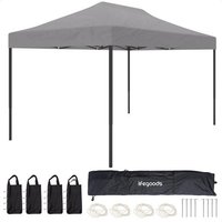 LifeGoods – Partyzelt Pavillon – Einfacher Aufbau – Wasserdicht – Tragetasche mit Rädern – 3,0 x 4,5 m – Dunkelgrau
