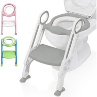 LifeGoods Toilettensitzverkleinerer – Toilettentrainer mit Treppe – Töpfchen Kleinkind – 2 bis 7 Jahre – Grau/Weiß