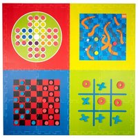Diese weiche Spielmatte von Lifetime Games ist ein großartiger Ort für Sie und Ihr Kind, um gemeinsam zu spielen. Diese Matte ist für Kinder ab 3 Jahren geeignet und bietet eine bequeme und sichere Umgebung zum Spielen. Die Matte kann auch als riesige Puzzlematte verwendet werden, mit der Ihre Kinder stundenlang Spaß haben können. Die Schaumstoffmatte besteht aus 1 Zentimeter hohem Polyäthylenschaum und ist somit eine weiche Spielfläche für Ihre Kleinen. Mit über 80 Teilen, darunter 16 Puzzleteile, die jeweils 30 x 30 Zentimeter groß sind, eignet sich diese Spielmatte hervorragend, um die Feinmotorik und die Problemlösungsfähigkeiten Ihres Kindes zu fördern. Die Puzzleteile sind farbenfroh und bieten vier verschiedene Spiele, nämlich Solitär, Rutschen und Leiterspiel, Dame und Butter-Käse-Eier.Spezifikationen Lifetime Games Playmat 4-in-1 Games Abmessungen gelegte Puzzlematte: 119 x 119 x 1 CM Größe loses Puzzleteil: 30 x 30 x 1 CM Material: Polyethylen-Schaumstoff Spiele: Solitaire, Dame, Tic-Tac-Toe, Schlangen und Leitern
