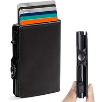 LUFT Kartenetui für 10 Karten Leder – Sicher – Erweiterbar – RFID-Schutz – Karte – Geldbörse – Aluminium – Herren – Für Männer und Frauen – Kartenetuis – Schwarz