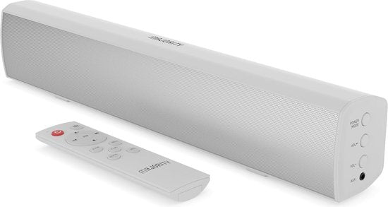 Verbessern Sie Ihr Fernseherlebnis mit kraftvollem und kompaktem Audio Genießen Sie Ihre Lieblingsfilme, Serien und Musik wie nie zuvor mit der Bowfell Compact Soundbar. Diese elegante und schlanke Soundbar liefert dank des eingebauten Subwoofers einen überraschend kraftvollen Sound. Egal, ob Sie einen spannenden Film sehen oder entspannte Musik genießen, die Bowfell erweckt Ihren Sound mit satten, tiefen Tönen zum Leben. Durch sein kompaktes Design passt er mühelos in jeden Raum, ohne dabei Kompromisse bei der Qualität einzugehen. Mit benutzerfreundlichen Anschlussmöglichkeiten wie Bluetooth, USB, AUX und RCA können Sie Ihre Lieblingsinhalte in Sekundenschnelle genießen. Die Bowfell ist perfekt für alle, die großen Sound in kleiner Größe suchen. Flexible Anschlussmöglichkeiten:Schließen Sie sie einfach über Bluetooth, USB, AUX oder RCA an. Für zusätzlichen Komfort ist die Soundbar mit einer Plug-and-Play-Funktion ausgestattet. Eingebauter Subwoofer: Für einen satten, vollen Bass, der jeden Verstärkte Wirkung auf jeden Beat: Verstärken Sie die Szene und lassen Sie jede musikalische Note mehr mitschwingen. Einstellbarer Equalizer: Passen Sie den Sound ganz einfach über die Fernbedienung mit verschiedenen Sound-Einstellungen an, die perfekt zu Ihren Vorlieben passen. Stylisches und kompaktes Design: Mit den Maßen von nur 38,8 x 5,4 x 7,2 cm und einem Gewicht von 1,5 kg findet diese Soundbar problemlos in jeder Einrichtung Platz. Bedienung per Touch und Fernbedienung: Bedienen Sie die Soundbar mühelos über das Gerät selbst oder bequem von Ihrem Sessel aus. Benutzerfreundlich Die Bowfell wird mit allem geliefert, was Sie brauchen, um sofort loslegen zu können. Zum Lieferumfang gehören eine Fernbedienung (mit Batterien), AUX- und RCA-Kabel sowie ein Netzkabel. Schließen Sie sie an, stellen Sie den Sound nach Ihrem Geschmack ein und genießen Sie ihn sofort. Schnell zu Hause Bestellen Sie noch heute Ihre Bestellung und erhalten Sie die Bowfell Compact Soundbar schon bald, damit Sie ein verbessertes Klangerlebnis genießen können. Häufig gestellte Fragen Ist es möglich, die Soundbar über Bluetooth mit meinem Fernseher zu koppeln? Ja, die Bowfell unterstützt Bluetooth-Konnektivität, so dass eine kabellose Verbindung einfach möglich ist. Vergewissern Sie sich nur, dass Ihr Fernseher ebenfalls Bluetooth-fähig ist. Ist die Installation schwierig?Ganz und gar nicht! Dank Plug-and-Play schließen Sie die Soundbar mühelos an und können sie innerhalb weniger Minuten in Betrieb nehmen. Hat die Soundbar einen integrierten Akku?Nein, die Bowfell wird mit Netzstrom betrieben und mit einem Netzkabel geliefert.