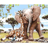 Malerei auf Zahlen Elefant & Giraffe – 40×50 cm