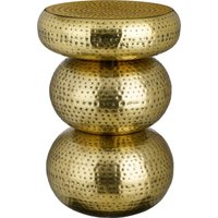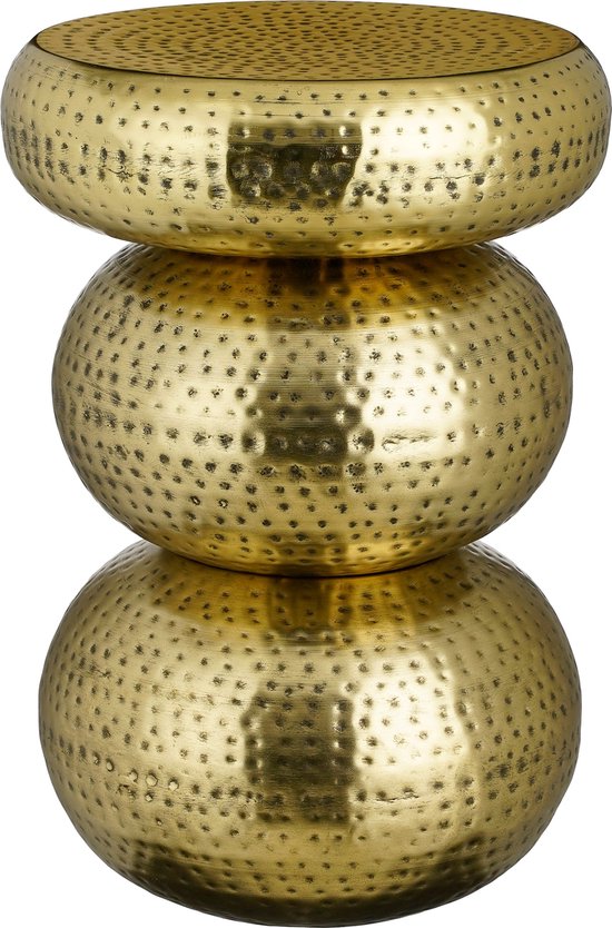 Verleihen Sie Ihrer Einrichtung ein stilvolles Upgrade mit dem Beistelltisch Clide von Mica Decorations! Der aus Metall gefertigte Tisch bezaubert mit einem goldenen Farbton und einem antiken Finish. Das Design beinhaltet einen Hammerschlag-Effekt, der zu seinem besonderen Look beiträgt. Mit einer Höhe von 46,5 cm und einem Durchmesser von 32,5 cm ist er ideal, um ihn neben einen Stuhl oder ein Sofa zu stellen. So haben Sie Ihre Tasse Kaffee oder Ihr Buch immer in greifbarer Nähe! Dieser runde Beistelltisch ist sowohl funktionell als auch dekorativ. Haben Sie schon einen geeigneten Platz im Auge?