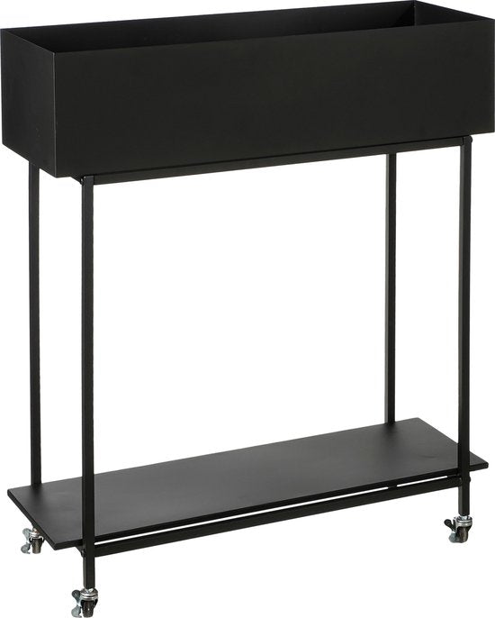 Mit dem Greenrax Pflanzenständer von Mica Decorations können Sie ein stimmungsvolles Ambiente in Ihrem Garten, auf Ihrem Balkon oder sogar auf Ihrer Dachterrasse schaffen! Dieser robuste und industrielle Pflanzenständer bietet nicht nur Platz für Ihre Pflanzen, sondern unter dem Pflanzgefäß gibt es auch jede Menge Platz für anderes Gartenzubehör! Denken Sie an Gartengeräte, einen stilvollen Eimer aus verzinktem Stahl oder Blumentöpfe voller Pflanzen. Beschreibung Robustes und industrielles Design für einen zeitgemäßen Look Handlicher Stauraum unter dem Pflanzgefäß für Gartenzubehör Ausgestattet mit vier Rädern – leicht zu bewegen Ideal zum Kombinieren mit anderen Greenrax Pflanzgefäßen und Zubehör Erhältlich in schwarz für ein kraftvolles und elegantes Statement Hergestellt aus Metall mit den Maßen L70 x B29 x H94 cm