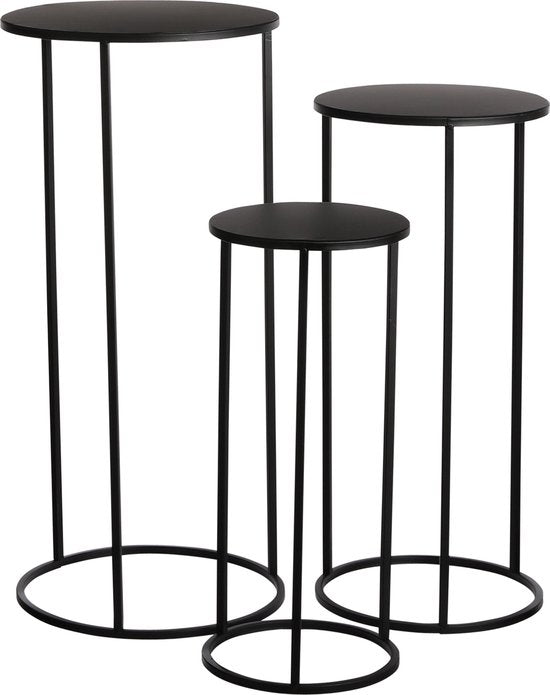 Mica Decorations Quinty Beistelltisch – 3er-Set – H70 x Ø32 cm – Metall – Schwarz