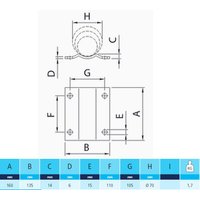 Montageplatte aus Eisen mit Löchern zur Befestigung von StützrädernBefestigen Sie Stützräder einfach mit dieser 6 mm dicken Eisenplatte. Die Platte ist 160 mm lang und 135 mm breit. Die Löcher befinden sich in Abständen von 105 mm und 110 mm. Die Löcher haben einen Durchmesser von 15 mm. Werkstoff: Eisen (Fe370c) Dicke: 6 mm Abmessungen: 135 x 160 mm Löcher bei: 105 x 110 mm Durchmesser der Löcher: 15 mm