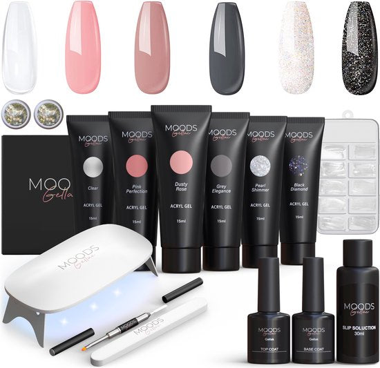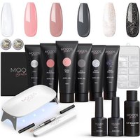 MoodsGellac Luxe Polygel Kit – Polygel Nägel Starter Pack – Inklusive UV LED Lampe – 6 Farben – Neutraler Glanz