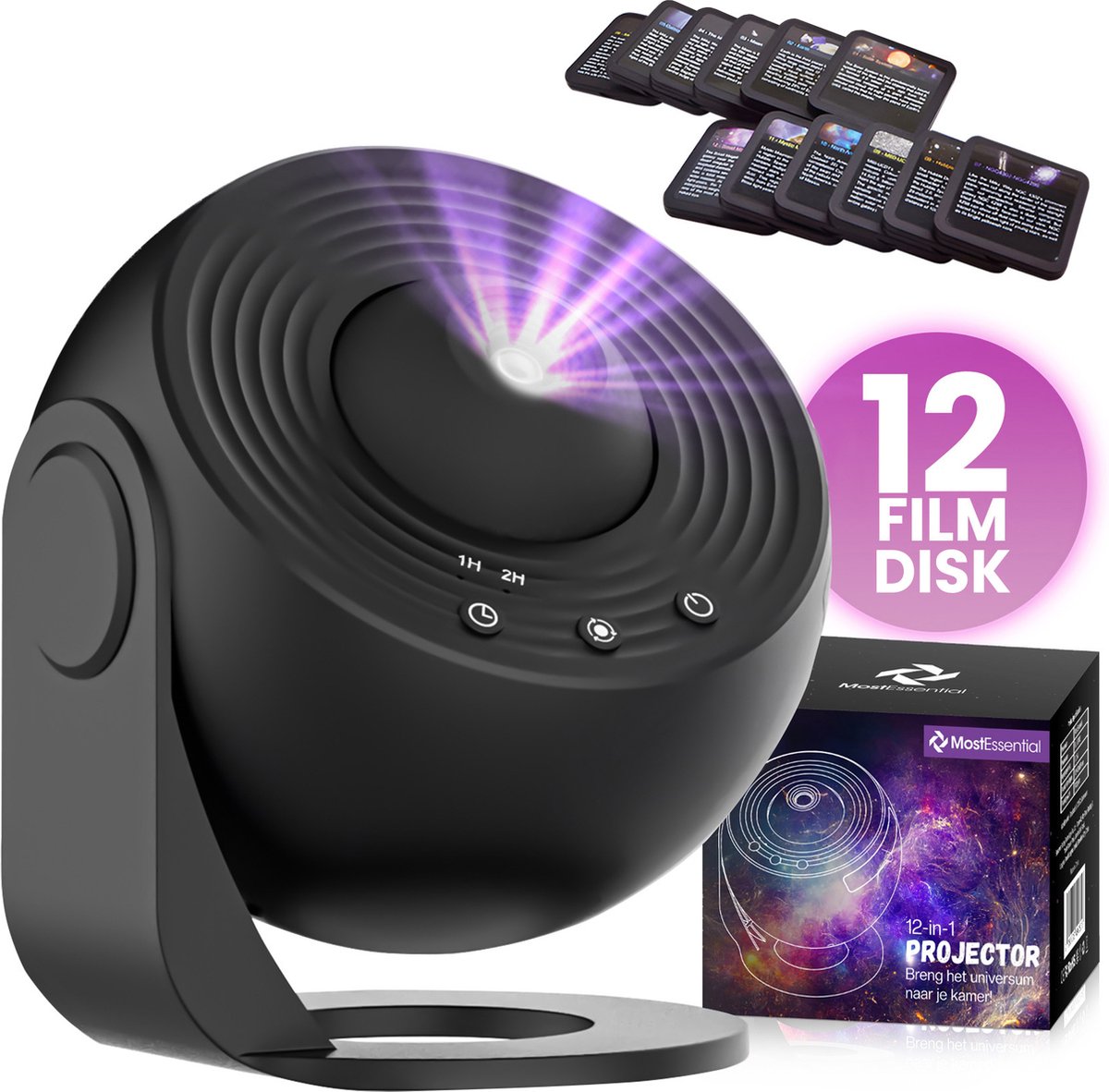 Verwandeln Sie Ihren Raum in einen faszinierenden Sternenhimmel mit dem MostEssential Sternenprojektor. Dank der gestochen scharfen Projektionen erleben Sie eine naturgetreue Reise durch das Universum. Entspannung und Bildung verbinden sich zu einem magischen Erlebnis, das für Jung und Alt geeignet ist. Die Magie des Universums zu Hause 12 fesselnde Projektionen: Wählen Sie aus Galaxien und Planeten, um Ihr Zimmer zu verzaubern. Der leise Betrieb schafft eine beruhigende Atmosphäre. Scharfe Bildqualität: Mit 6500K Licht bietet dieser Projektor lebensechte Projektionen von Sternen und Planeten. Innovative Funktionalitäten 360° Drehbar: Richten Sie die Projektion auf die Decke, die Wand oder den Boden und genießen Sie die natürliche Bewegung der Konstellationen. Ideal für Kinderzimmer: Projiziert in einer Entfernung von bis zu 3 Metern mit einer Reichweite von 16 m² für ein beeindruckendes Sternenerlebnis. Smartes Design mit Zeitersparnis Eingebauter Timer: Stellen Sie ganz einfach einen 1-Stunden- oder 2-Stunden-Timer ein. Der Projektor schaltet sich automatisch nach 4 Stunden aus, wenn kein Timer eingestellt ist. Energieeffizient: Verbraucht nur 8 Watt pro Stunde, für einen effizienten und lang anhaltenden Betrieb. Das perfekte Geschenk Eine ideale Kombination aus Spaß und Bildung. Kinder entdecken spielerisch mehr über Galaxien und Planeten, während die bezaubernde Projektion für eine beruhigende Nachtruhe sorgt. Ohne Risiko – 100% Zufriedenheit garantiert Nicht zufrieden? Wir bieten eine Geld-zurück-Garantie, damit Sie dieses besondere Produkt ohne Sorgen genießen können. Bestelle noch heute und bringe das Universum in dein Zimmer. Klicken Sie auf “In den Warenkorb” und machen Sie sich bereit für ein unvergessliches Erlebnis.