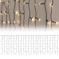 Diamantregen im eigenen Garten! Die 2,5 m lange Lichterkette mit dem faszinierenden Schleppeffekt ist dank der Schutzart IP44 für den Innen- und Außenbereich geeignet. Die PVC-Schläuche bieten einen zusätzlichen Schutz für die LED-Streifen. Produktspezifikationen: Beleuchtungsart: LED 189 LED 6,6 m lang Sortierung der Beleuchtung: Raster Beleuchtungseinsatz: Innen und außen Länge der Lichterkette (leuchtender Teil): 200 cm Kabellänge (zwischen Steckdose und Leuchtteil): 500 cm Gesamtlänge: 7 m Höhe des Lichtvorhangs: 70cm Schutzart IP44 Farbe: Warmweiß
