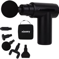 Niceey – Mini-Massagepistole – 6 Geschwindigkeiten – 5 Massageköpfe – Kabellos – Schwarz