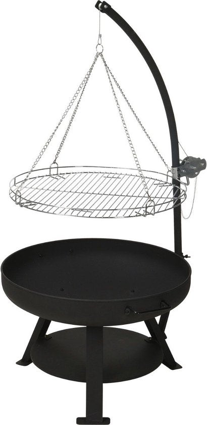 Entdecken Sie das perfekte Gartenzubehör – die Feuerschale mit Grillrost! Ideal, um zu grillen und es sich in einer kühlen Nacht unter dem Sternenhimmel warm und gemütlich zu machen. Diese vielseitige Feuerschale von ProGarden VAGGAN ist ein Muss für jeden Garten. Wunderschönes Ambiente: Die Feuerstelle im Freien bietet die perfekte Quelle für ein sanftes Feuer für Licht und Wärme am Abend und verleiht Ihrem Garten einen Hauch von Stil und Eleganz. Funktional: Ob Sie mit den Kindern Marshmallows rösten, leckere Burger grillen oder einfach nur die warme Glut eines knisternden Feuers genießen, mit dieser vielseitigen Feuerschale sind Sie immer gut gerüstet. Materialien: Der VAGGAN Feuerkorb ist aus schwarz lackiertem Carbonstahl gefertigt; er wird mit einem 55 cm langen Grillrost aus verchromtem Carbonstahl geliefert. Hängen Sie den Grillrost einfach mit der Stahlkette auf. Verschönern Sie noch heute Ihren Außenbereich mit dieser Feuerschale mit Grillrost! Mit seiner cleveren Konstruktion erhalten Sie optimalen Komfort, während Sie Ihren Lebensraum im Freien genießen.Mit seinen vielseitigen Funktionalitäten und seinem kompakten Design ist dies die ideale Ergänzung für Ihren Garten, Ihre Terrasse oder andere Außenbereiche. Farbe: schwarz Material: Metall Material des Grills: verchromter Kohlenstoffstahl Abmessungen: 60 x 39,5 cm (ø x H) Gesamthöhe: 127 cm Verstellbare Grillhöhe über Kette Feuerschale mit Grillfunktion Feuerschalenstärke:
